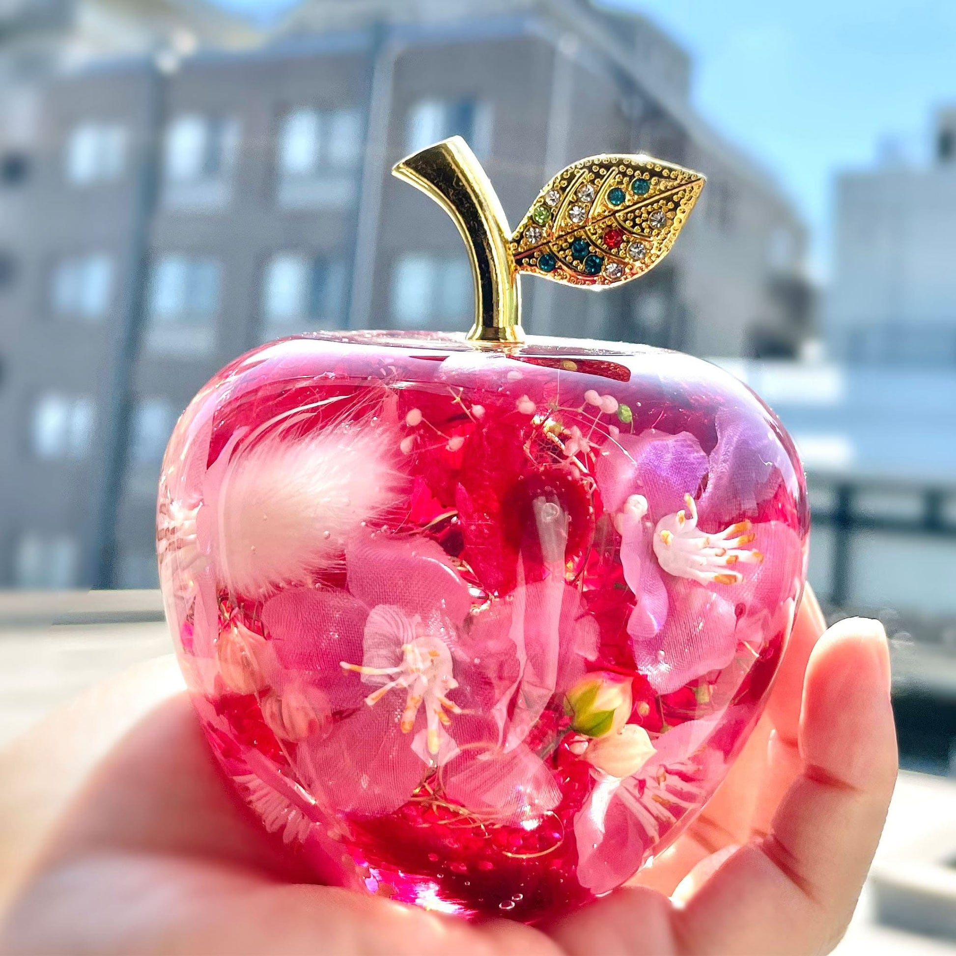 つるんと丸いリンゴの瓶でハーバリウムを作ろう