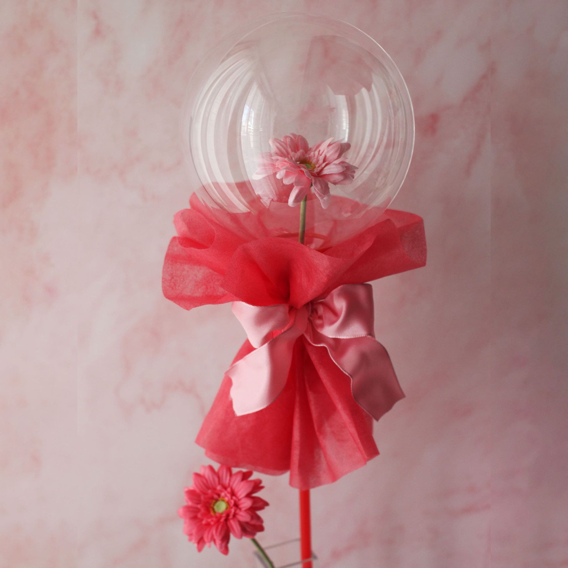 クリアな風船の中にお花がある不思議なバルーンフラワーを体験できます。季節に関係なく、スティックタイプで、お持ちになって楽しめます。お花は2色ご用意しますので、お選びいただけます。
