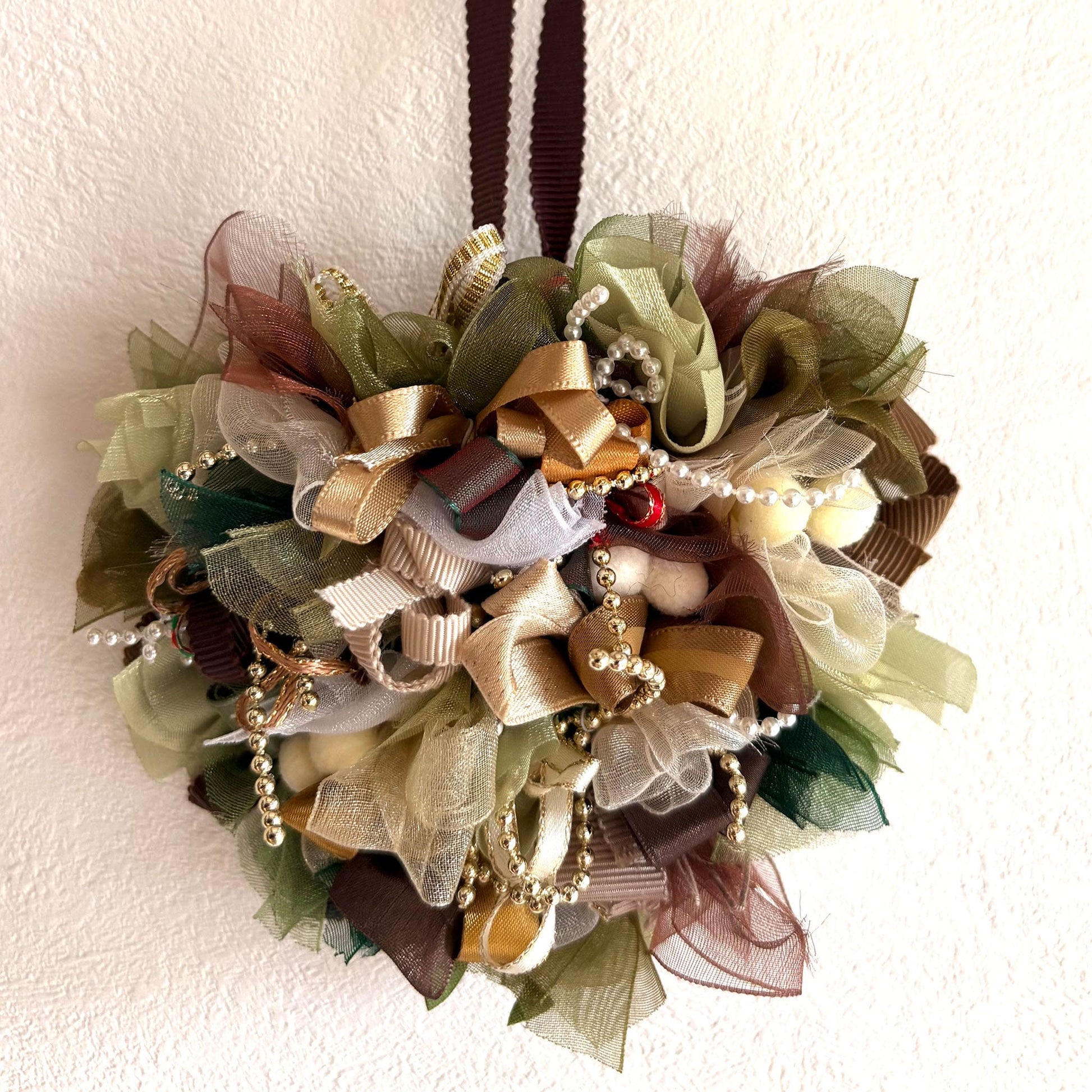 | 注意事項 | ワイヤーを捻ってリボンをネットに付けますので、爪の長い方や爪が傷む時困る方はご遠慮ください。 お渡しする材料のリボンは作品見本と一部変更の場合があります |